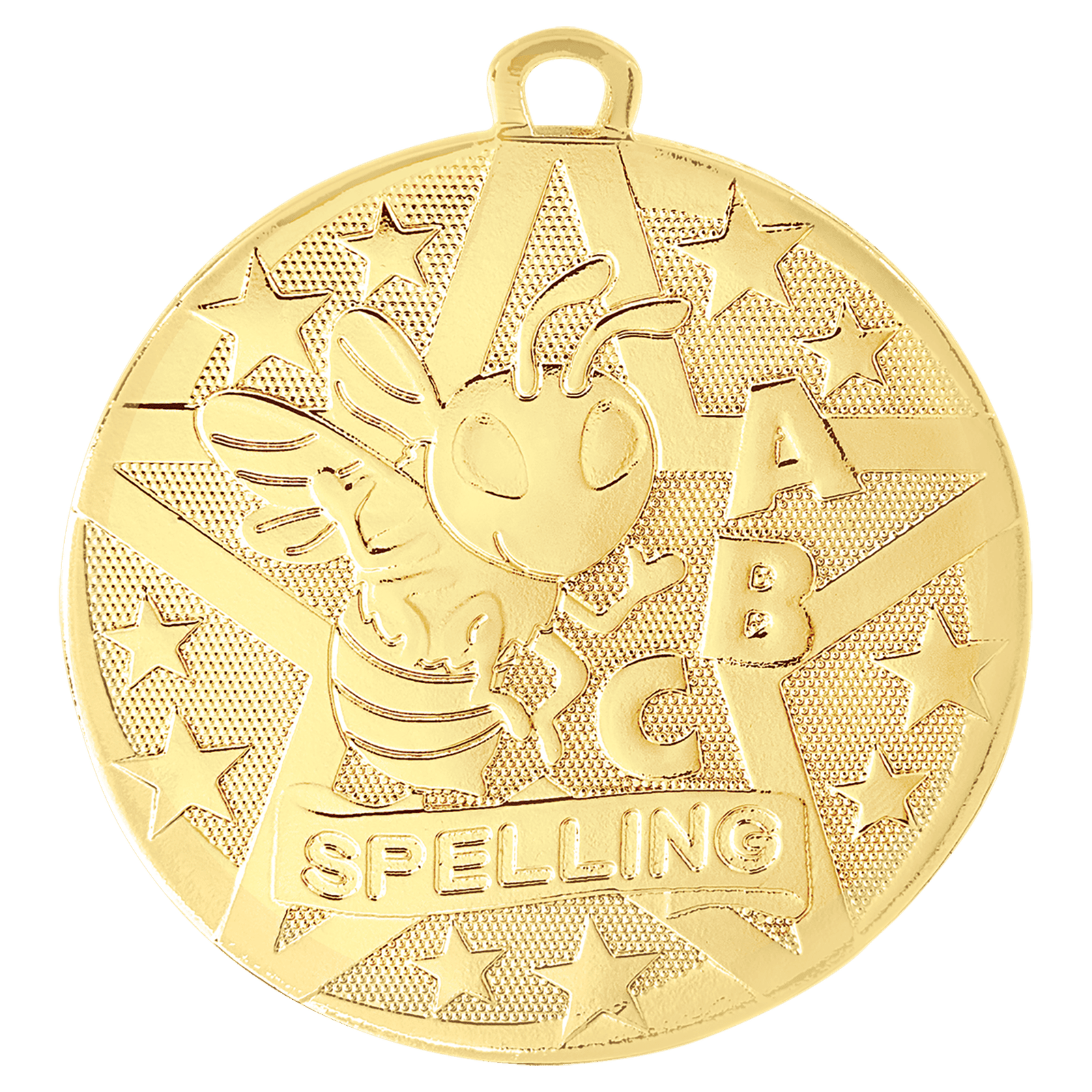 Engraved Personalized Spelling Superstar Medal-Gold – custom made just for you.Add your name, logo, or message.Fast local production from Trophies Etc.