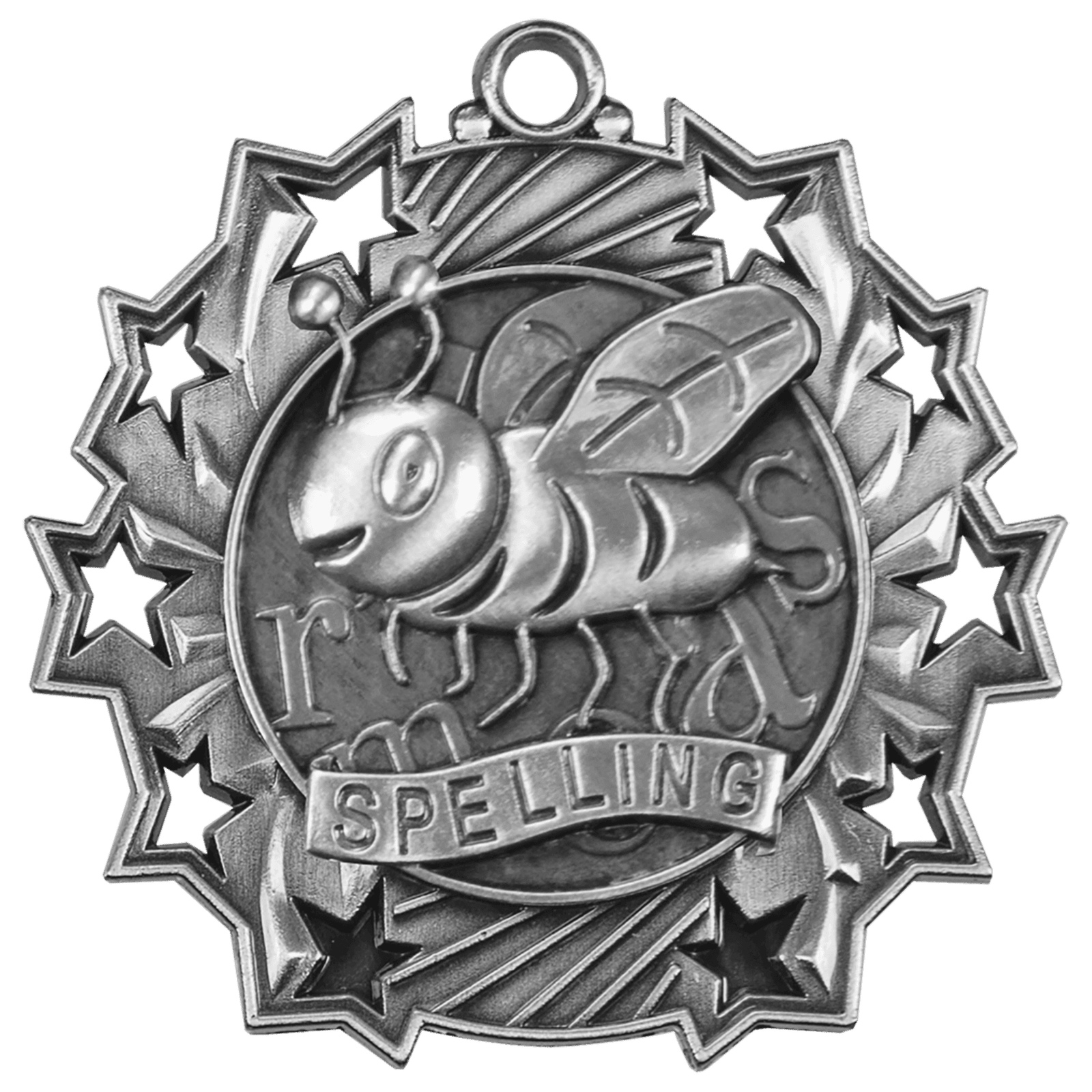 Engraved Personalized Spelling Ten Star Medal-Silver.