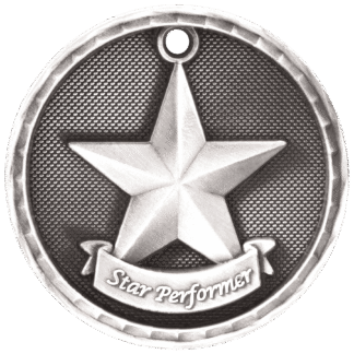 Engraved Personalized Star Performer 3-D Medal-Gold – custom made just for you.Add your name, logo, or message.Fast local production from Trophies Etc.