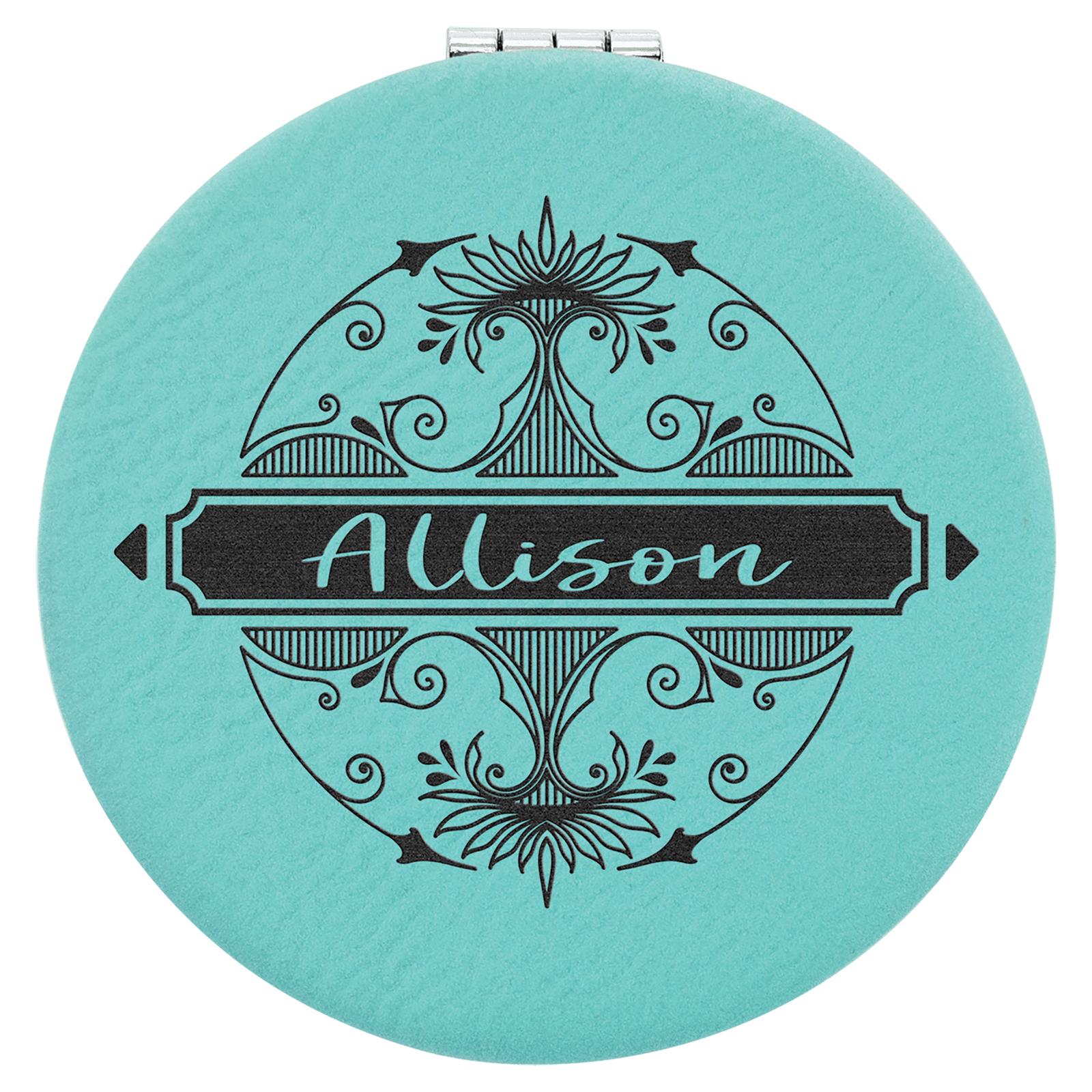 2 1/2″ Teal Laserable Leatherette Compact Mirror