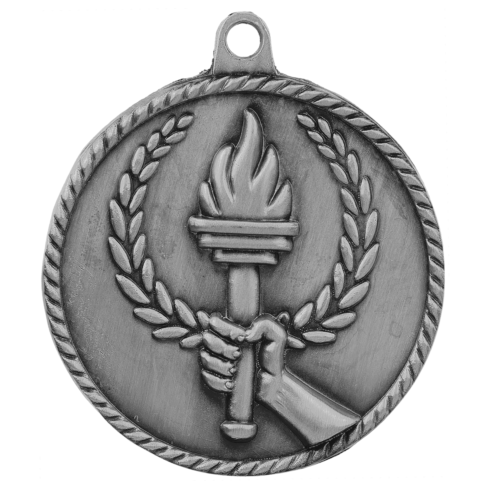 Engraved Personalized Torch High Relief Medal-Silver – custom made just for you.