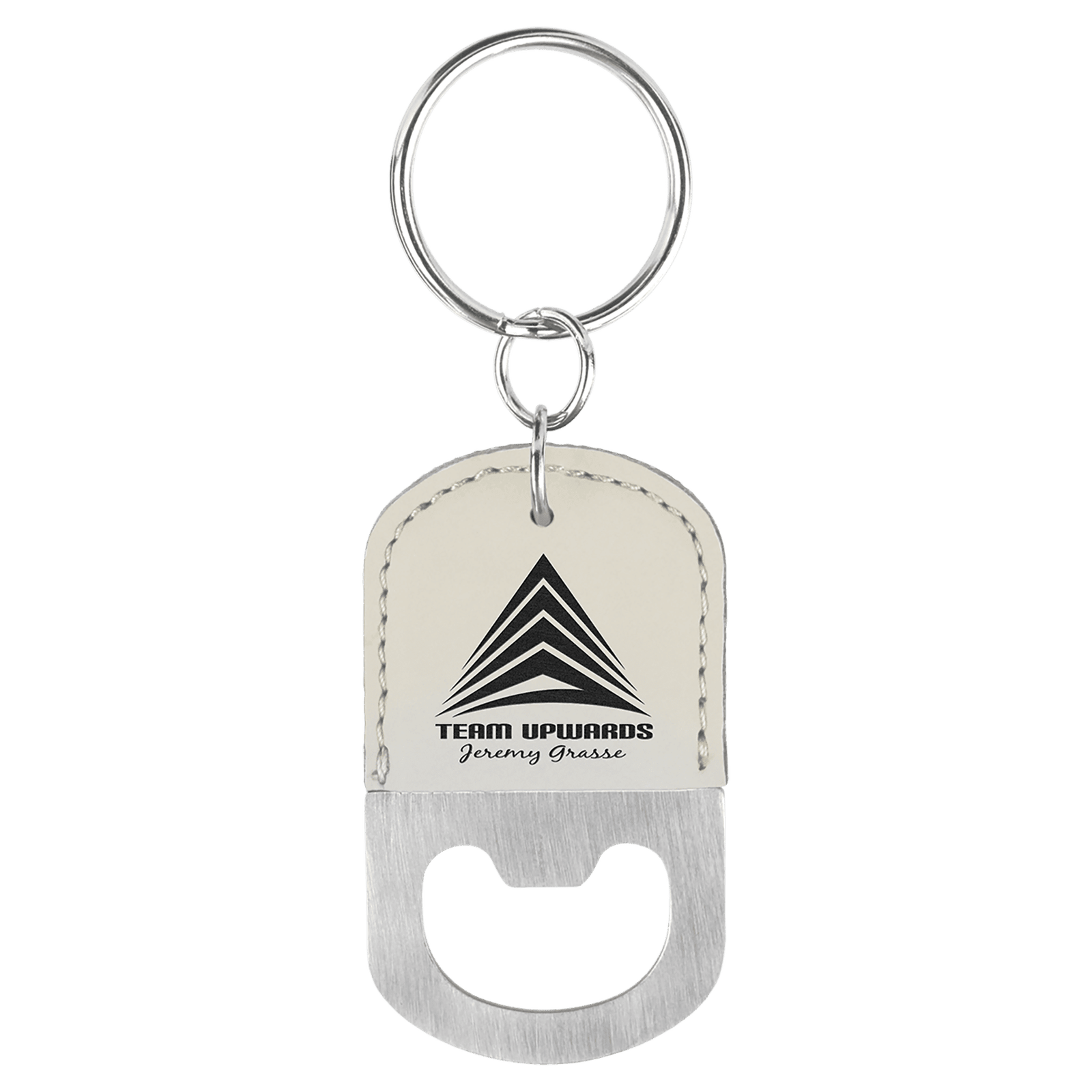 White Leatherette Oval Bottle Opener with Keychain