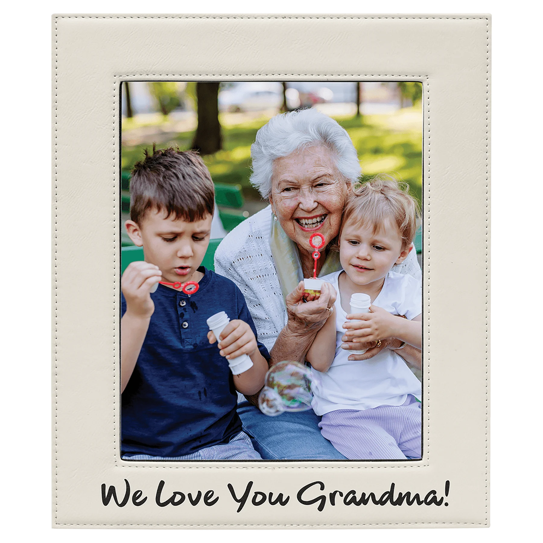 Engraved Personalized White Leatherette Photo Frame – custom made just for you.