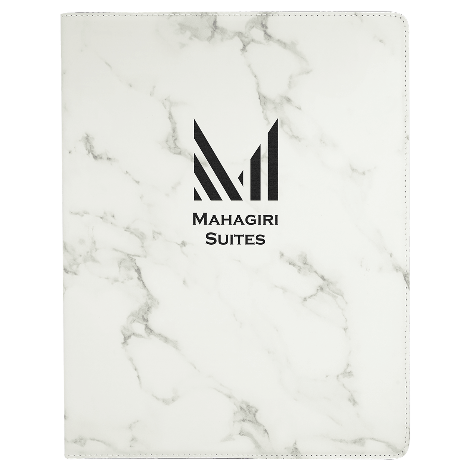 9 1/2″ x 12″ White Marble Laserable Leatherette Portfolio with Notepad