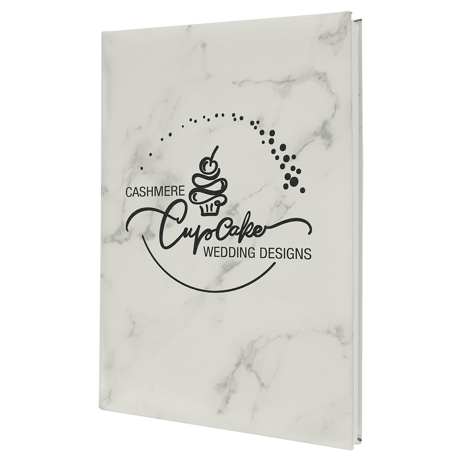 7″ x 9 3/4″ White Marble Laserable Leatherette Sketch Book with Unlined Notepad